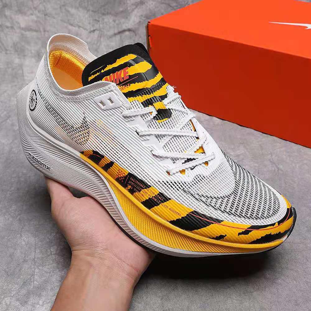 Nike ZoomX, a nossa espuma mais resiliente, acabou de ficar ainda melhor. Ao correr do calcanhar aos pés, ele desbloqueia ainda mais retorno de energia do que antes e ajuda a reduzir o peso com uma forma convexa na parte interna do pé para uma passada mais estável. Um placa de fibra de carbono em todo o calçado fornece uma sensação rígida e propulsiva.